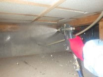 防蟻用乳剤などの液剤を、床下の木部や土壌に散布します。(液剤ではなく、粒剤をまく方法もあります)